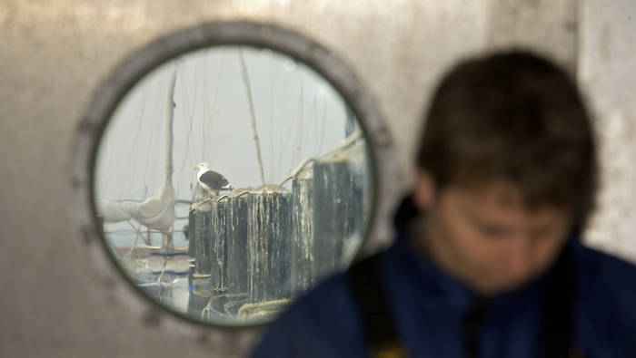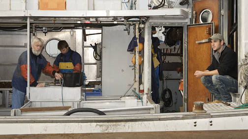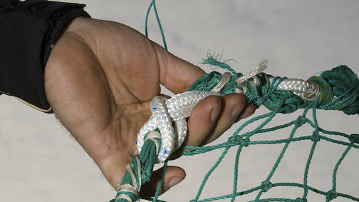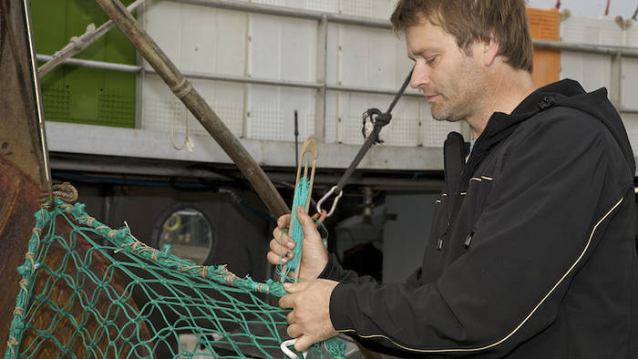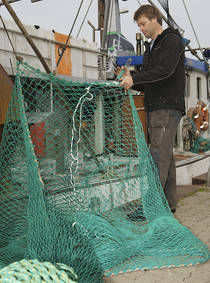 Fischer Björn Fischer bei der Netzreparatur (GeoBytes)
