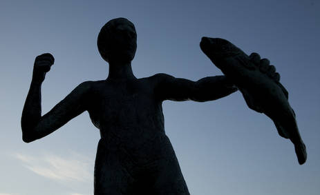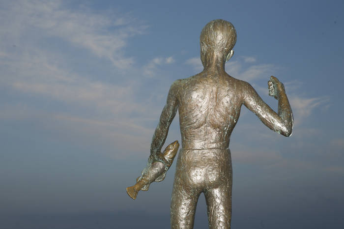 Skulptur „der Angler“ von Karin Hertz am Heikendorfer Strandweg (GeoBytes)