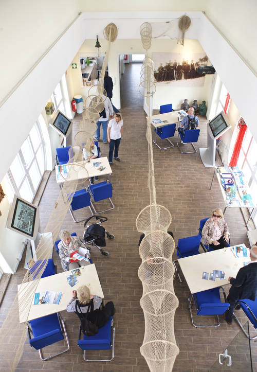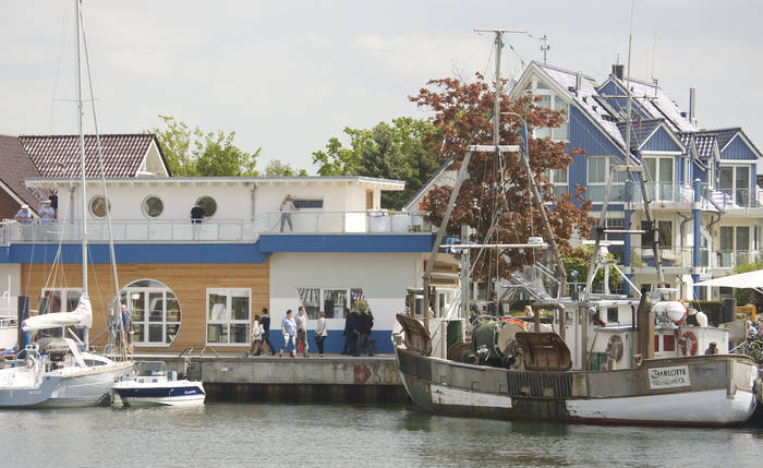 Es sind Geschichten wie die von Heinzl Ficht, die von nun an im neuen Fischerei- und Hafeninformationszentrum weitererzählt werden und so für die Nachwelt erhalten bleiben. Im vorderen Bereich des Gebäudes können die Besucher maritime Accessoires und Mitbringsel von der Ostsee erstehen, sich über Veranstaltungen informieren und Unterkünfte buchen. Direkt dahinter liegt der luftige Ausstellungs- und Versammlungsraum. Neben Fundstücken, wie Reusen, Netzen und einem historischen Echolot, gibt es hier auch die Möglichkeit, zu verweilen und in Büchern und Broschüren zu schmökern. Von der frei zugänglichen Dachterrasse aus haben die Besucher den besten Blick über den Niendorfer Hafen, können dem Treiben auf und am Wasser folgen und eine gute Nase Hafenluft nehmen.