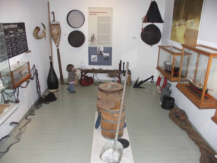 Neben Altona war Glückstadt in der Zeit vom 17. bis 19. Jahrhundert der bedeutendste Hafen für Grönlandfahrer. Von ihrem dramatischen Kampf mit dem Wal wird in der Abteilung Seefahrt berichtet. Harpunen und Flensmesser zeugen von ihrem rauen Geschäft. Ebenfalls zu sehen sind viele kuriose Handarbeiten, die die Walfänger auf See fertigten. Die heute noch in Glückstadt lebendige Tradition der Heringsfischerei wird anhand von Schiffsmodellen, Kantjes (Heringsfässer) und dem Handwerkszeug der Heringsfischer veranschaulicht.