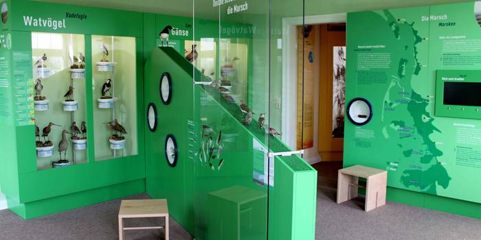 In modern gestalteten Ausstellungsräumen wird die Natur und Landschaft beiderseits der deutsch-dänischen Grenze vorgestellt. Unsere Erlebnis-Ausstellung gibt Antworten auf Deine Fragen. Steilküste, Marsch & Köge, Feuchtgebiete, Heide & Moor, Wald, Siedlung, Honigbiene und das Leben unter Wasser sind die Themen, die dich durch die Räume führen. Ein Aktionsraum für Kinder und ein Info-Café laden zum Verweilen ein. Alle Informationstexte sind in deutscher und dänischer Sprache.