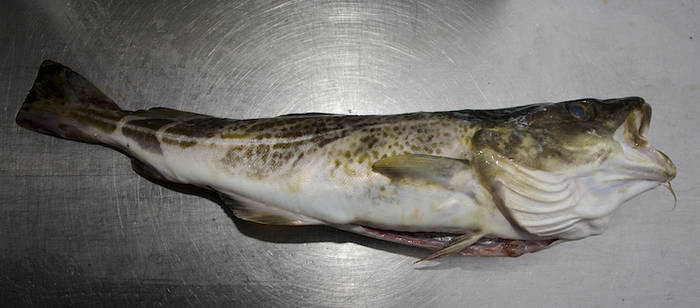 Der Dorsch, oder Kabeljau, wie er in der Nordsee heißt, ist leicht an seinem Bartfaden, den drei Rückenflossen und der in diesen Gewässern grünmarmorierten Färbung erkennbar. Er kann bis 150 cm lang werden, der Durchschnitt liegt unterhalb der Hälfte. Der Name Dorsch ist übrigens die Kurzform von Dörrfisch, also Trockenfisch, den auch die Wikinger schon als Torsk kannten.