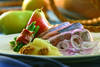 Original Glückstädter Matjes ganz traditionell mit Birnen, Bohnen und Speck