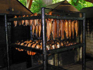 Eine weitere Delikatesse für nur kurze Zeit in der Sommersaison ist die geräucherte Silbermaräne, die auch zum Fischerfest täglich geräuchert wird.