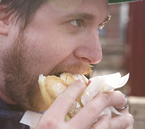 … Ker, wat is dat ne K…“ dichtete Herbert Grönemeyer einst der Currywurst auf die Pelle und hätte das gleich auch für das Fischbrötchen tun können. Egal, ob Matjes, Rollmops, Backfisch, Krabben, Bismarck- oder Brathering: Der Träger ist mit seinem Inhalt stets heillos überfordert, und es gleicht einem Wunder, wenn nix auf dem Tisch, dem Steg oder eben auf der Jacke landet. Mit klassisch rotem Schimmer zwischen den Teigwangen schenkt gerade das Matjesbrötchen dem Hungrigen ein unwiderstehliches Lächeln – erwartbare Sauereien werden gerne ignoriert. Allerdings lässt sich das Risiko leicht auf ein Minimum verringern – siehe Infokasten rechts.