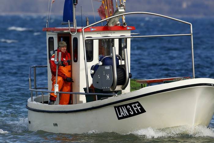 Der Verkauf beginnt zu unterschiedlichen Zeiten nach dem Einlaufen. Direkt im Hafen Langballigau liegt der Kutter "Odin" mit dem Fischereikennzeichen "LAN 3 FF".