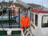 Fischer Harald Lehuniak bietet nach Verfügbarkeit im Langballigauer Hafen "Frischfisch vom Kutter" an.