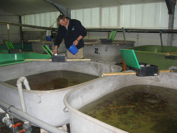 Fischwirtschaftsmeister Thilo Kortmann bei der Fütterung