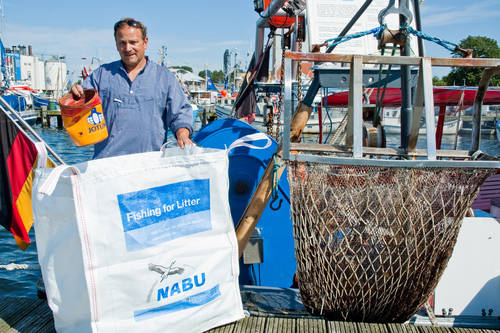 Im Mai 2011 startete das Projekt „Fishing for Litter“ in den Fischereihäfen Burgstaaken (Fehmarn) und Heiligenhafen. Im Frühjahr 2012 kam mit Sassnitz (Rügen) ein weiterer Ostseehafen dazu und im Sommer gelang mit Norddeich (Ostfriesland) der Sprung an die Nordseeküste. Hier baut der NABU mit regionalen und überregionalen Partnern eine Abfalllogistik auf, die dafür sorgt, dass die Fischer ihre „gefangenen“ Abfälle an Land kostenlos entsorgen können. Hierfür erhalten sie Säcke, sogenannte Big Bags, um den Müll an Bord der Schiffe zu sammeln. Zurück im Hafen werden die Säcke in extra aufgestellte Container geworfen, die von der ZVO-Entsorgung GmbH und der Nehlsen GmbH zur Verfügung gestellt werden. Um mehr über die Abfallbelastung der Ostsee zu erfahren wird der so gesammelte Müll mit Unterstützung von Der Grüne Punkt – Duales System Deutschland GmbH sortiert und analysiert. In Häfen, die nicht an diesem Projekt teilnehmen, ist die Müllentsorgung in der Regel kostenpflichtig. So gelangt ein großer Teil des unerwünschten „Beifanges“ wieder in die Ostsee, gefährdet die Meeresumwelt und beschädigt oder zerstört möglicherweise die Netze und Ausrüstung des nächsten Fischers.