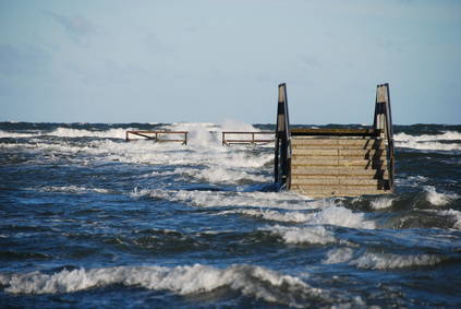 Sie wirkt so freundlich und zurückhaltend wie ein Dorfteich, aber sie hat es in sich. Wind, Wellen und Hochwasser können auch in der vermeintlich kleinen Ostsee genügend Anlauf nehmen, um an Land gewaltigen Schaden anzurichten. So ist an der schleswig-holsteinischen Ostseeküste alles unterhalb von drei Metern über Normalnull potentiell überflutungsgefährdet. Das Hinterland zwischen Hohwacht und Heikendorf liegt zu großen Teilen sogar unterhalb des Meeresspiegels. So verschonte die große Sturmflut von 1872 in Stein, Wendtorf und Schönberg kaum ein Haus.